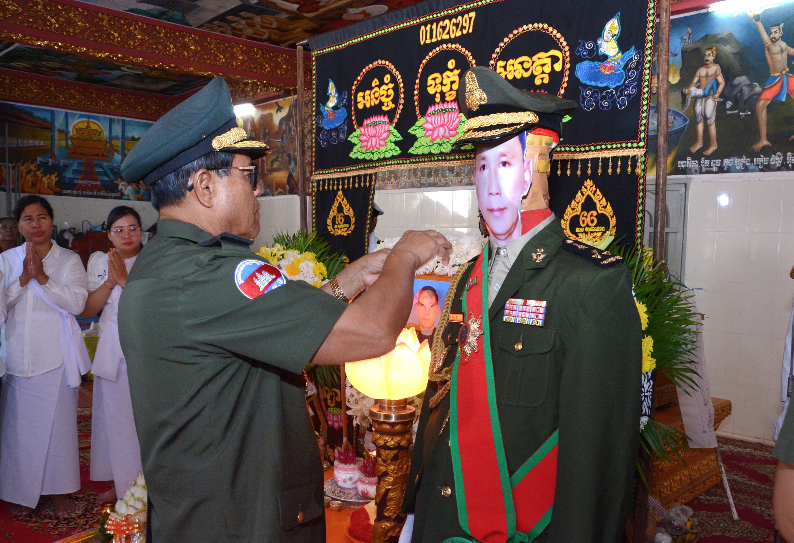 គណៈប្រតិភូអគ្គបញ្ជាការ  អញ្ជើញដាក់កម្រងផ្កាគោរពវិញ្ញាណក្ខន្ធសព​ ឧត្ដមសេនីយ័ទោ ផន សុធាវី