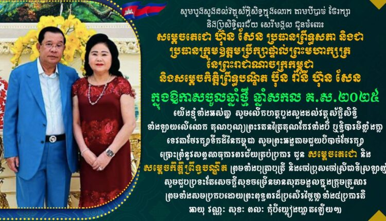 នាយឧត្ដមសេនីយ៍ វង្ស ពិសេន ផ្ញើសារលិខិតគោរពជូនពរ សម្ដេចតេជោ ហ៊ុន សែន និងសម្ដេចកិត្តិព្រឹទ្ធបណ្ឌិត ប៊ុន រ៉ានី ហ៊ុនសែន ក្នុងឱកាសចូលឆ្នាំសកល ២០២៥