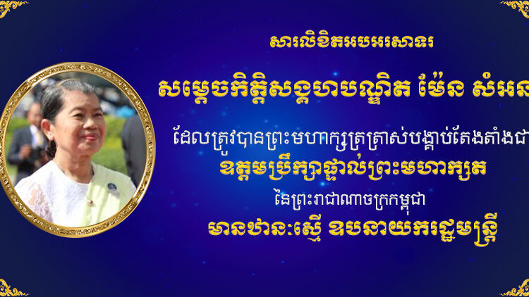 នាយឧត្តមសេនីយ៍ វង្ស ពិសេន សូមអបអរសាទរ និងគោរពជូនពរ សម្តេច ម៉ែន សំអន ដែលត្រូវបានព្រះមហាក្សត្រ តែងតាំងជា ឧត្តមប្រឹក្សាផ្ទាល់ព្រះមហាក្សត្រ មានឋានៈស្មើ ឧបនាយករដ្ឋមន្ដ្រី