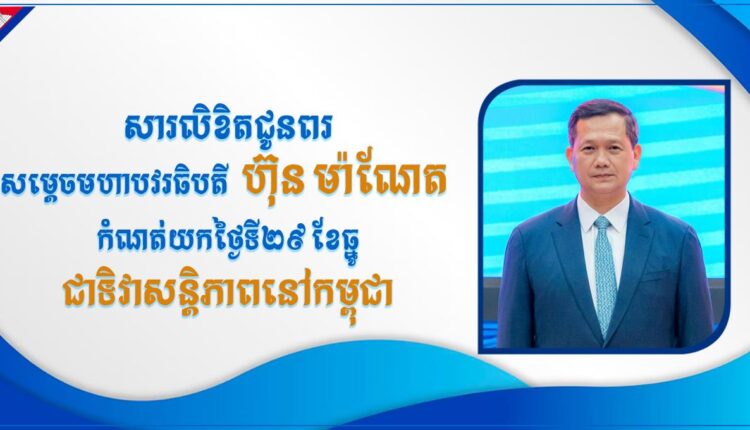 ការប្រកាសកំណត់យកថ្ងៃទី២៩ ខែធ្នូ ជា «ទិវាសន្តិភាពនៅកម្ពុជា» ជាគំនិត ប្រកប ដោយគតិបណ្ឌិតខ្ពង់ខ្ពស់បំផុត និងប្រកប ដោយទស្សនវិស័យវែងឆ្ងាយ របស់ សម្តេចបវរធិបតី ហ៊ុន ម៉ាណែត សម្រាប់ជាឧត្តមប្រយោជន៍របស់ជាតិ មាតុ ភូមិ។ យើងខ្ញុំទាំងអស់គ្នាមាន ក្តីសោមនស្សរីករាយក្រៃលែង និងសូមប្រកាសគាំទ្រយ៉ាង ពេញទំហឹងនូវប្រសាសន៍ ដ៏ខ្ពង់ ខ្ពស់របស់សម្តេចមហាបវរធិបតី ហ៊ុន ម៉ាណែត នាយក រដ្ឋមន្ត្រីនៃព្រះរាជាណាចក្រកម្ពុជា៕