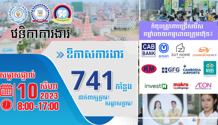 (ភ្នំពេញ)៖ ក្រុមហ៊ុនធំៗចំនួន១១ នឹងផ្តល់ឱកាសការងារសរុបចំនួន ៧៤១ កន្លែង សម្រាប់និស្សិត និងអ្នកកំពុងស្វែងរកការងារធ្វើក្នុងវេទិកាការងាររបស់ទីភ្នាក់ងារជាតិមុខរបរ និងការងារ(NEA)។ ចំពោះនិស្សិត និងអ្នកកំពុងតែស្វែងរកការងារធ្វើ ឬចង់ផ្លាស់ប្តូរការងារអាចយកប្រវត្តិរូបសង្ខេប (CV) ដើម្បីចូលរួមដាក់ពាក្យ និងសម្ភាសផ្ទាល់ជាមួយ អ្នកតំណាងក្រុមហ៊ុនទាំងនោះបាន ចាប់ពីម៉ោង ៨:០០ព្រឹក ដល់ម៉ោង ០៥:០០ល្ងាច នៅក្នុងបរិវេណក្រសួងការងារ និងបណ្តុះបណ្តាលវិជ្ជាជីវៈនៅថ្ងៃទី១០ ខែសីហា ឆ្នាំ២០២៣ស្អែកនេះ។