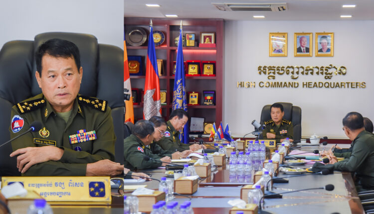 (ភ្នំពេញ)៖ ឯកឧត្ដម នាយឧត្តមសេនីយ៍ វង្ស ពិសេន អគ្គមេបញ្ជាការនៃកងយោធពលខេមរភូមិន្ទ បានអញ្ជើញជាអធិបតីដឹកនាំកិច្ចប្រជុំត្រួតពិនិត្យការងារហ្វឹកហ្វឺន។