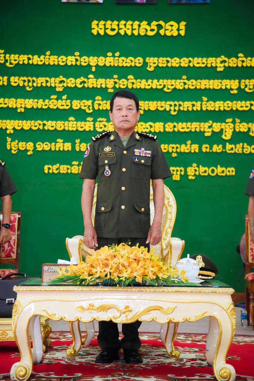 ការក្រើនរម្លឹករបស់ ឯកឧត្តម នាយឧត្តមសេនីយ៍ ធ្វើឡើងក្នុងពិធីប្រកាសតែងតាំងមុខតំណែងប្រធាននាយកដ្ឋានពិសេស មេបញ្ជាការ បញ្ជាការដ្ឋានជាតិកម្លាំងពិសេសប្រឆាំងភេរវកម្ម នាព្រឹកថ្ងៃទី២៥ ខែកញ្ញា ឆ្នាំ២០២៣ នៅបញ្ជាការដ្ឋានជាតិកម្លាំងពិសេសប្រឆាំងភេរវកម្ម។