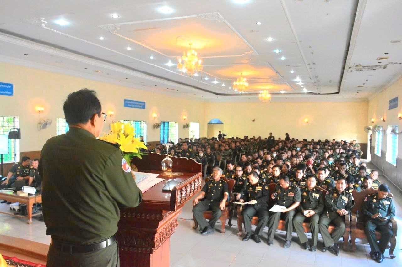 (ភ្នំពេញ) ឯកឧត្ដម ឧត្ដមសេនីយ៍ឯក ខឹម សន នាយរងសេនាធិការចម្រុះ នាយកទីចាត់ការឃោសនាព័ត៌មាន អគ្គបញ្ជាការដ្ឋាន អញ្ជើញជាអធិបតីក្នុងពិធីអប់រំផ្សព្វផ្សាយយុទ្ធសាស្ត្របញ្ចកោណដំណាក់កាលទី១ និងកម្មវិធីនយោបាយរាជរដ្ឋាភិបាលនីតិកាលទី៧ នៃរដ្ឋសភាសម្រាប់ការកសាងនិងការពារជាតិមាតុភូមិ ឆ្នាំ២០២៣-២០២៨ ជូននាយទាហាន នាយទាហានរង ពលទាហាន នៅបញ្ជាការដ្ឋានវិស្វកម្ម អគ្គបញ្ជាការ។
