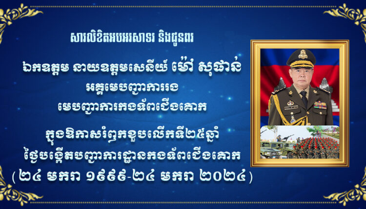 ឧត្ដមសេនីយ៍ឯក ប៊ុត សុភាព ផ្ញើសារលិខិតអបអរសាទរ និងគោរពជូនពរ ឯកឧត្ដម នាយឧត្ដមសេនីយ៍ ម៉ៅ សុផាន់ ក្នុងឱកាសរំឭកខួបលើកទី២៥ឆ្នាំ ថ្ងៃបង្កើតបញ្ជាការដ្ឋានកងទ័ពជើងគោក