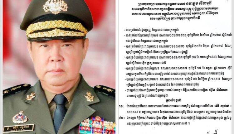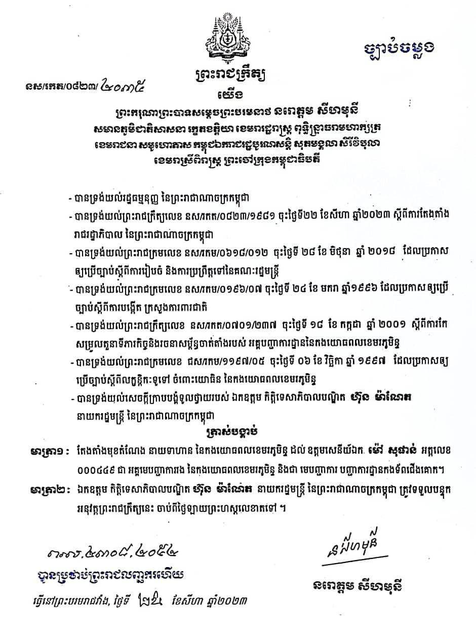 ឧត្ដមសេនីយ៍ឯក មុន្នី ហោរ៉ាត សូមអបអរសាទរ និងគោរពជូនពរ ឯកឧត្តម ឧត្តមសេនីយ៍ឯក ម៉ៅ សុផាន់ ដែលត្រូវបានតែងតាំងជា អគ្គមេបញ្ជាការរង និងជាមេបញ្ជាការកងទ័ពជើងគោក