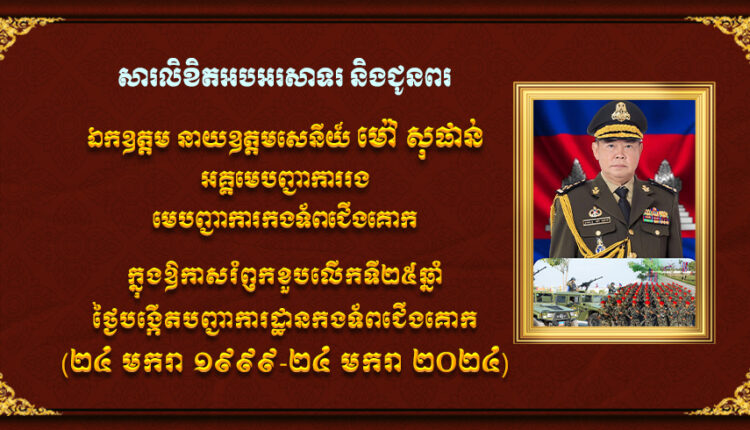 ឧត្ដមសេនីយ៍ឯក មុន្នី ហោរ៉ាត ផ្ញើសារលិខិតអបអរសាទរ និងគោរពជូនពរ ឯកឧត្ដម នាយឧត្ដមសេនីយ៍ ម៉ៅ សុផាន់ ក្នុងឱកាសរំឭកខួបលើកទី២៥ឆ្នាំ ថ្ងៃបង្កើតបញ្ជាការដ្ឋានកងទ័ពជើងគោក