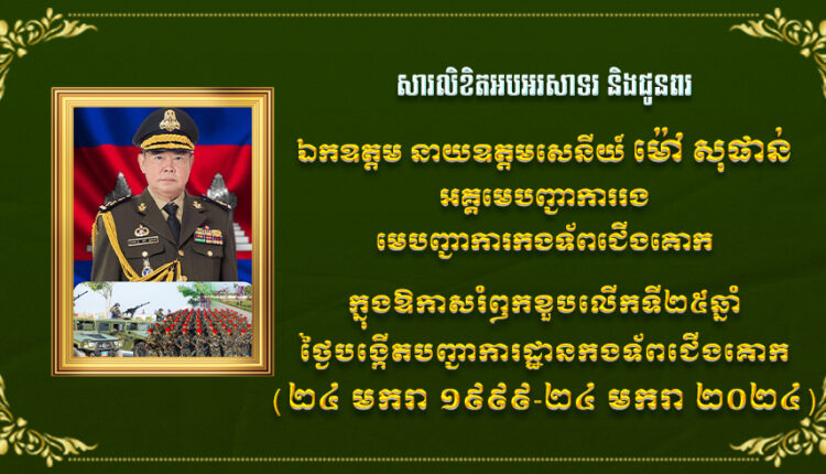 ឧត្តមសេនីយ៍ទោ អឿ សំអុល ផ្ញើសារលិខិតអបអរសាទរ និងគោរពជូនពរ ឯកឧត្ដម នាយឧត្ដមសេនីយ៍ ម៉ៅ សុផាន់ ក្នុងឱកាសរំឭកខួបលើកទី២៥ឆ្នាំ ថ្ងៃបង្កើតបញ្ជាការដ្ឋានកងទ័ពជើងគោក