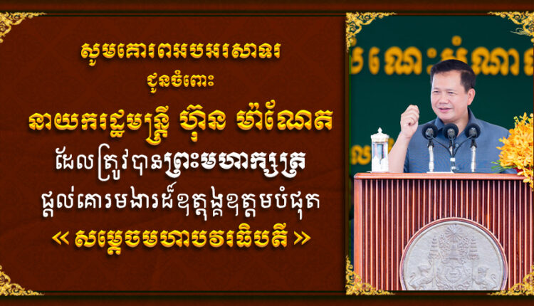 នាយករដ្ឋមន្រ្តី ហ៊ុន ម៉ាណែត ពិតជាស័ក្តិសមបំផុត ចំពោះការទទួលបាននូវគោរមងារដ៏ឧត្តុង្គឧត្តមខ្ពង់ខ្ពស់បំផុត ជា «សម្តេចមហាបវរធិបតី» ហើយការផ្តល់គោរមងារនេះពិតជាស័ក្តិសមបំផុតសម្រាប់មុខតំណែងដ៏ខ្ពស់បំផុត ក្នុងប្រទេសកម្ពុជាដែលប្រកាន់យករបបរាជានិយម អាស្រ័យដោយរដ្ឋធម្មនុញ្ញ ហើយគោរមងារនេះ ពិតស័ក្តិសមបំផុតចំពោះសម្តេច ដែលជាប្រមុខរាជរដ្ឋាភិបាល ពោរពេញទៅដោយសមត្ថភាពដ៏ខ្ពង់ខ្ពស់ ចំណេះដឹងដ៏ជ្រៅជ្រះ និងទេពកោសល្យដ៏ប៉ិនប្រសប់ប្រកបដោយគតិបណ្ឌិតដ៏ខ្ពង់ខ្ពស់។