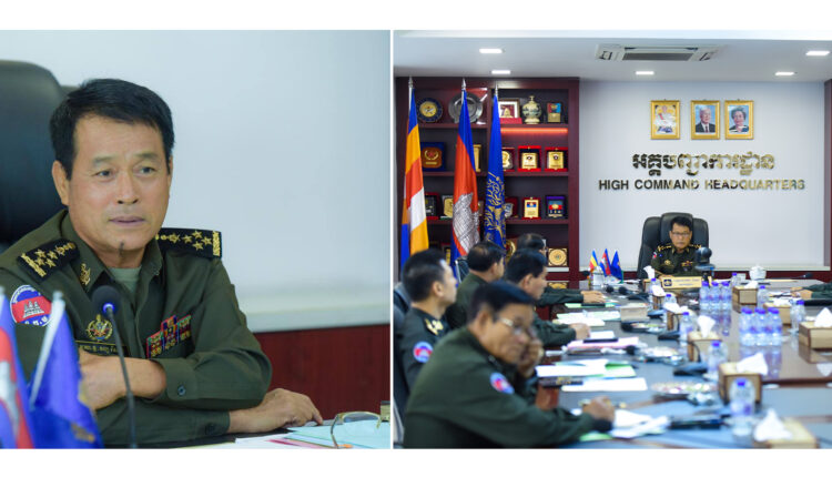 (ភ្នំពេញ)៖ ឯកឧត្ដម នាយឧត្តមសេនីយ៍ វង្ស ពិសេន អគ្គមេបញ្ជាការនៃកងយោធពលខេមរភូមិន្ទ បានអញ្ជើញជាអធិបតីដឹកនាំកិច្ចប្រជុំបូកសរុបរបាយការណ៍លទ្ធផលការងារខែឧសភា និងដាក់ទិសដៅអនុវត្តការងារខែមិថុនា ឆ្នាំ២០២៤។