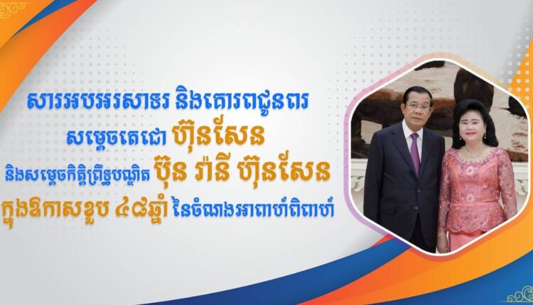 នៅក្នុងឱកាសដ៏សិរីមង្គលាភិរម្យប្រសើរថ្លៃថ្លានេះ យើងខ្ញុំសូមគោរពអនុញ្ញាតសម្តែងនូវអំណរសាទរ យ៉ាងស្មោះអស់ពីដួងចិត្ត ប្រកបដោយមនោសញ្ចេតនា រំភើបរីករាយក្រៃលែង និងសូមបួងសួងដល់ទេវតាសូមប្រសិទ្ធពរជ័យ ដល់ចំណងអាពាហ៍ពិពាហ៍ ដែលបានកើតឡើងក្នុងគ្រាដ៏សែនកម្សត់នោះ ឱ្យកាន់តែផ្អែមល្ហែម ត្រជាក់ត្រជំដូចទឹកអម្រឹត និងសូមប្រកបដោយសុខភាពល្អបរិបូណ៍ កម្លាំងពលំមាំមួន ជន្មាយុយឺនយូរ និងសម្រេចបានជោគជ័យយ៉ាងត្រចះត្រចង់ ក្នុងការបន្តចូលរួមដឹកនាំប្រទេស ដើម្បីអភិវឌ្ឍលើគ្រប់វិស័យ មានភាពរីកចម្រើនរុងរឿង ក្រោមដំបូលមហាសន្តិភាព ស្ថិរភាពជានិច្ចនិរន្តរ៍តរៀងទៅ។