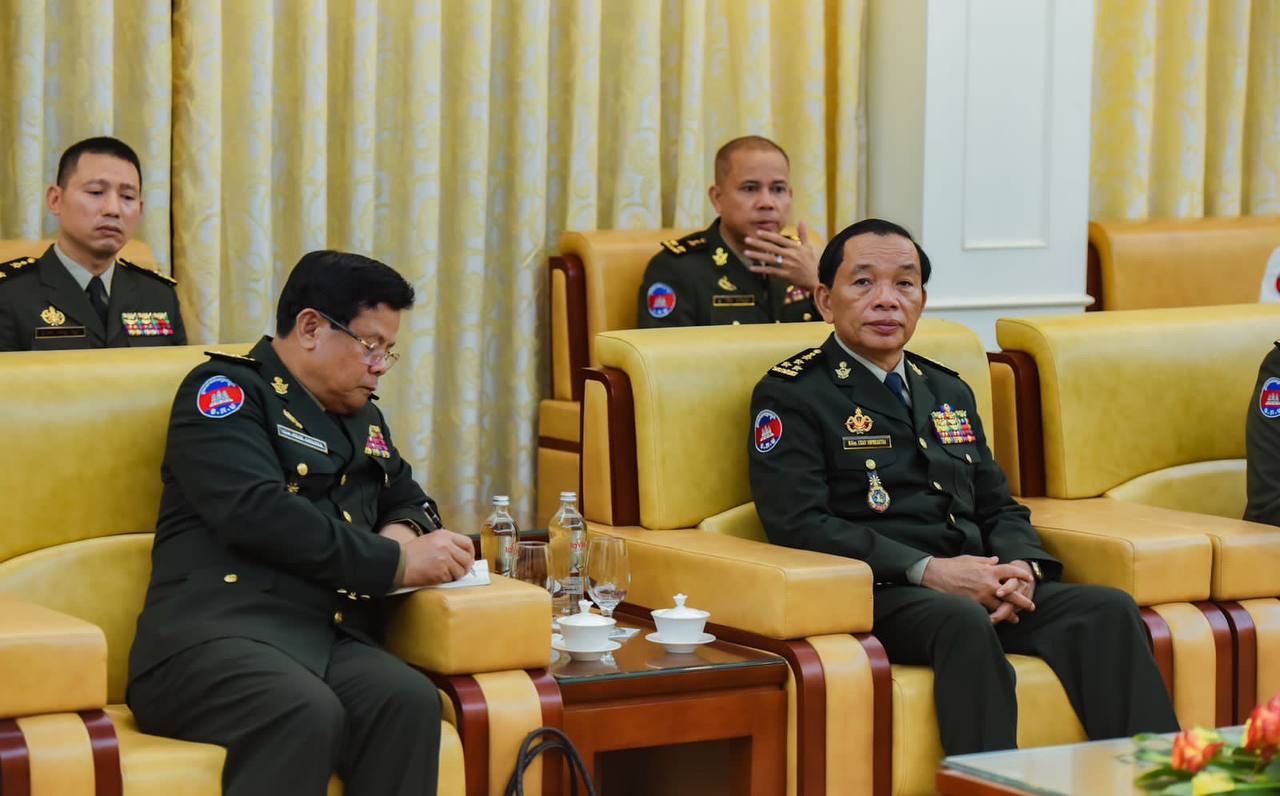 (ហាណូយ)៖ នៅក្នុងដំណើរបំពេញទស្សនកិច្ចនៅសាធារណរដ្ឋសង្គមនិយមវៀតណាម នារសៀលថ្ងៃទី១៧ ខែតុលា ឆ្នាំ២០២៣ ឯកឧត្តម នាយឧត្តមសេនីយ៍ វង្ស ពិសេន អគ្គមេបញ្ជាការ នៃកងយោធពលខេមរភូមិន្ទ និងគណៈប្រតិភូជាន់ខ្ពស់កងទ័ពកម្ពុជា បានចូលជួបសម្ដែងការគួរសមជាមួយ ឯកឧត្តម នាយឧត្តមសេនីយ៍ ហ្វាន់ វ៉ាន់ហ្ស៊ាង រដ្ឋមន្ត្រីក្រសួងការពារប្រទេសវៀតណាម។