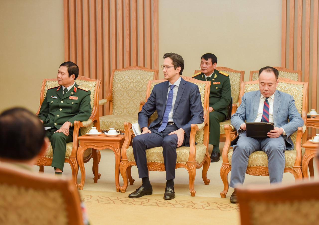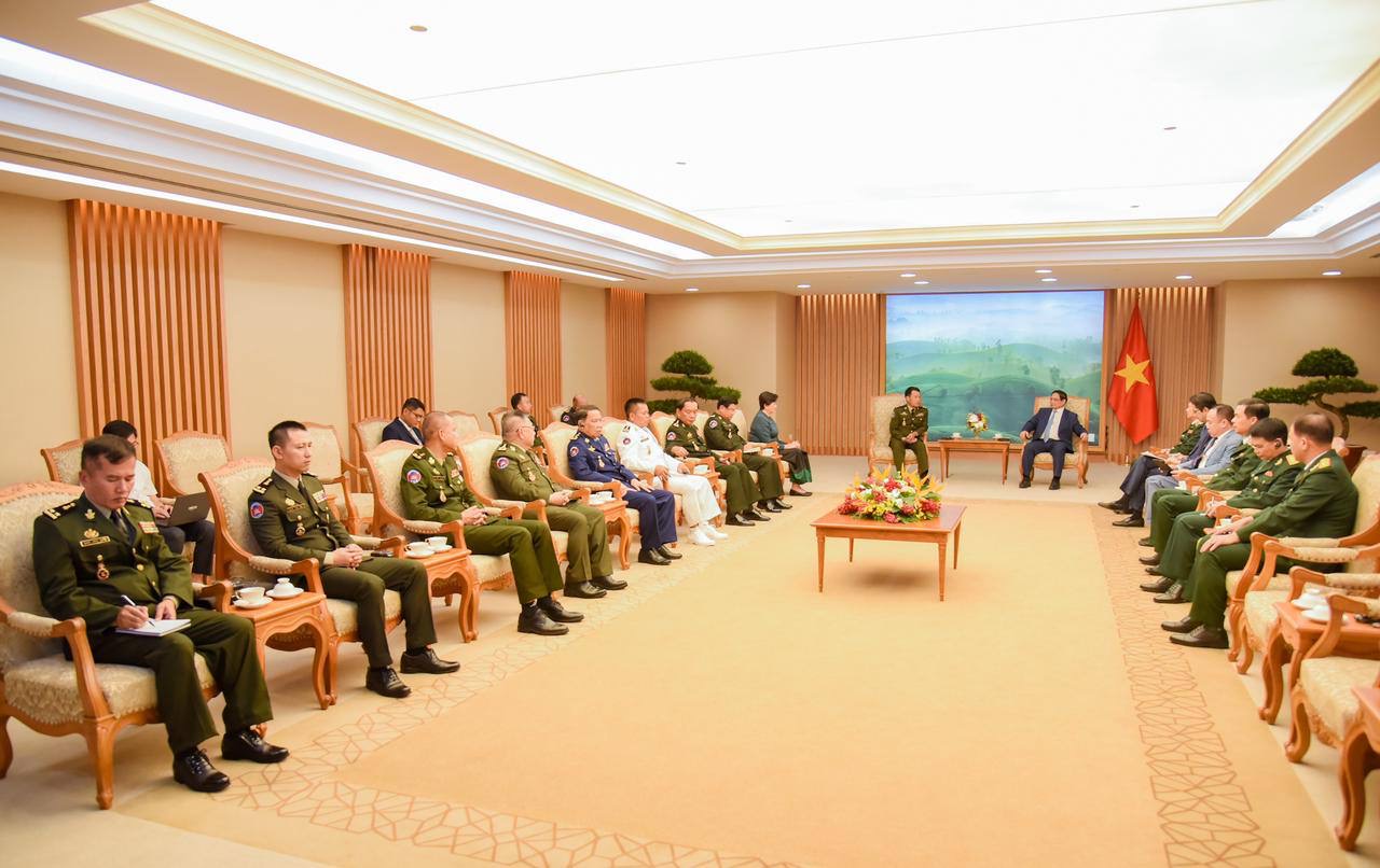(ហាណូយ)៖ នៅថ្ងៃទី១៧ ខែតុលា ឆ្នាំ២០២៣ ឯកឧត្តម ផាម មិញជិញ នាយករដ្ឋមន្ត្រី នៃសាធារណរដ្ឋសង្គមនិយមវៀតណាម បានអនុញ្ញាតឱ្យ ឯកឧត្តម នាយឧត្តមសេនីយ៍ វង្ស ពិសេន អគ្គមេបញ្ជាការ នៃកងយោធពលខេមរភូមិន្ទ និងគណៈប្រតិភូ ចូលជួបសម្តែងការគួរសម និងពិភាក្សាការងារ។