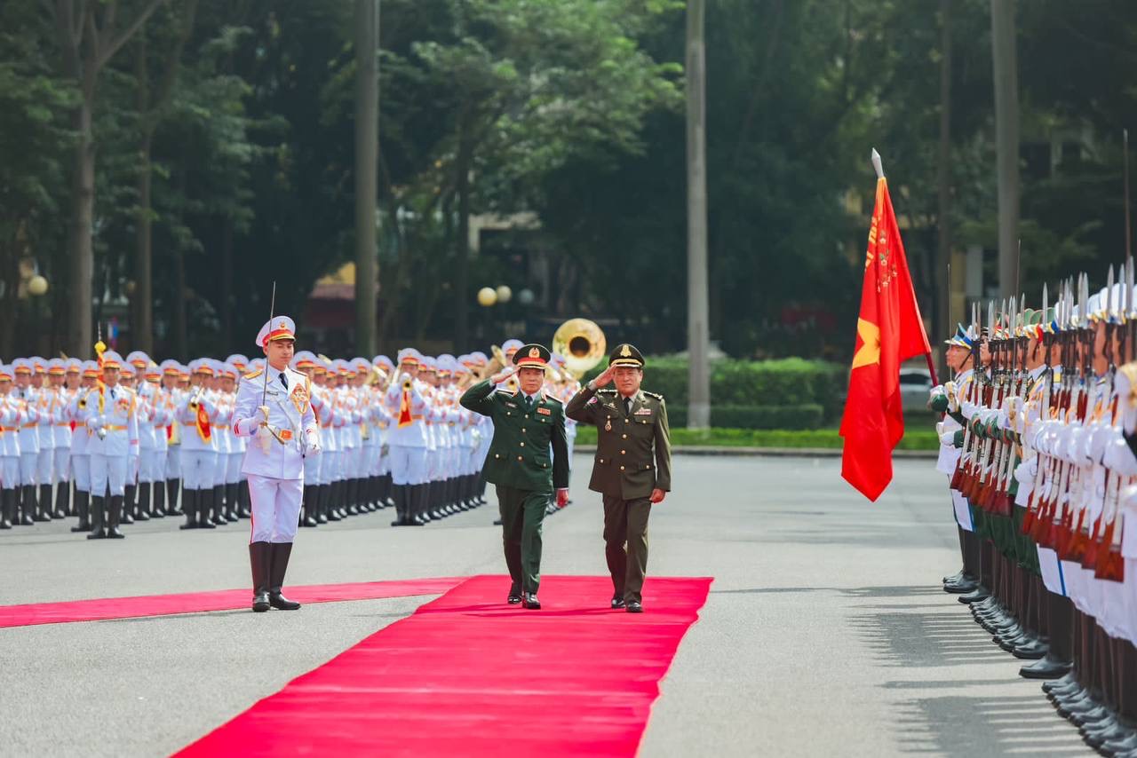ជាការឆ្លើយតប ឯកឧត្តម ផាន មិញជិញ បានថ្លែងនូវការស្វាគមន៍ដំណើរទស្សនកិច្ចរបស់គណៈប្រតិភូ ដោយជឿជាក់ថា តាមរយៈទស្សនកិច្ចនេះនឹងទទួលជោគជ័យ និងបង្កើតការលើកទឹកចិត្តដ៏ខ្លាំងក្លាសម្រាប់សកម្មភាពសហប្រតិបត្តិការយោធា និងការពារជាតិរវាងប្រទេសទាំងពីរនាពេលខាងមុខ។