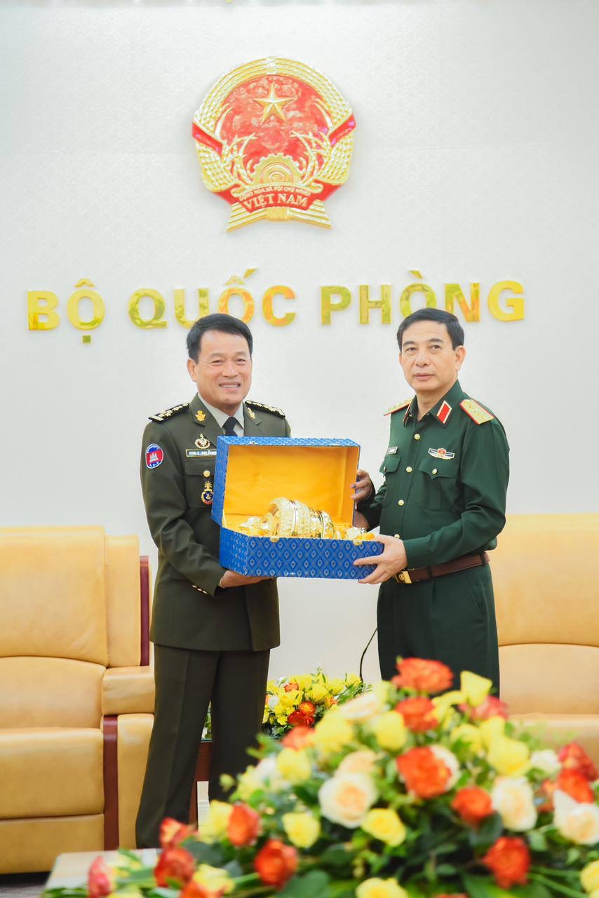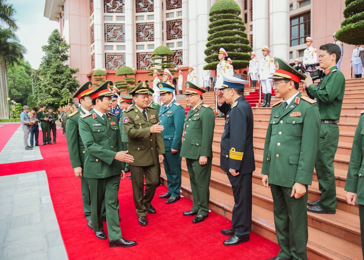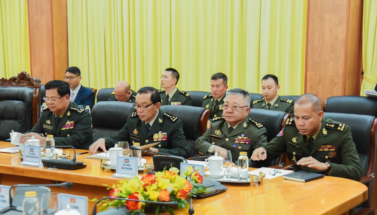 ឯកឧត្តម នាយឧត្តមសេនីយ៍អគ្គមេបញ្ជាការ បានរាយការណ៍ជូនពីជំនួបពិភាក្សាការងារជាមួយ ឯកឧត្តម ឧត្តមសេនីយ៍ឯកបម្រុង ង្វៀន តឹងគឿង អនុរដ្ឋមន្ត្រីក្រសួងការពារប្រទេស និងជាប្រធានអគ្គសេនាធិការកងទ័ពប្រជាជនវៀតណាម ជុំវិញសកម្មភាព និងគោលដៅនៃកិច្ចសហការរួមគ្នា ដើម្បីលើកកម្ពស់កិច្ចសហប្រតិបត្តិការឱ្យកាន់តរីកចម្រើន។